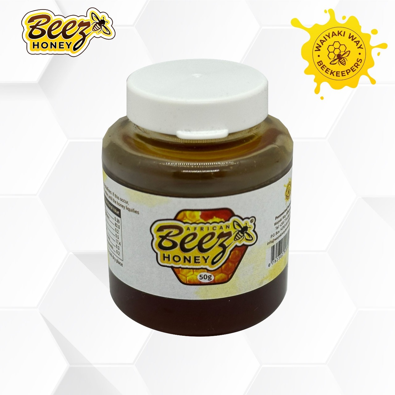 Indulge in the pure, delicious taste of Kenyan sunshine with Beez Honey, crafted by Waiyaki Way Beekeepers. Our honey is sourced from ethically managed beehives in the lush Kikuyu region, where bees buzz freely among vibrant wildflowers. Our commitment to natural beekeeping practices ensures our honey retains its unique floral notes, delicate sweetness, and rich, golden color.